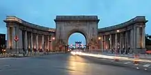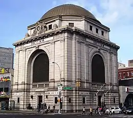 - π Chatham Square (at the intersection of The Bowery, East Broadway, Park Row, Mott and Worth Streets). At this square at the confluence of several major streets, there is a memorial archway to Chinese-Americans who died in World War II which has some interesting calligraphy. Also in the square is a statue of Lin Zexu, a Chinese scholar who opposed the opium trade in the 19th century.