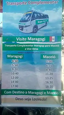 - São Miguel dos Milagres. Take a scheduled van to Japaratinga. It goes every 15min and costs R$5 (May 2021). From there take a motortaxi to the ferry for R$13 (May 2021). In April 2021 the ferry was for free when not having a car or motorbike. From Porto de Pedras there are scheduled vans for R$6 (May 2021) or Motortaxis to São Miguel dos Milagres and to the nearby village Porto da Rua, where the hostel is.