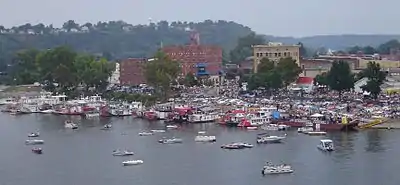 - 🌍 Ohio River Sternwheel Festival, Ohio Riverfront Park. Ohio River Levee on the corner of Front and Greene St, downtown, always the weekend after Labor Day. Sa 7:30PM/10PM. "Harry J. Robinson" Fireworks. They anchor barges in the middle of the Ohio River and produce one of Ohio's outstanding fireworks displays, from the barges, reflected in the water, with illumination of the bridges, by fireworks. Quite a display. Excellent event!