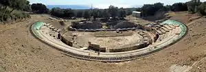 - 🌍 Ancient Theatre. It was constructed in the Hellenistic period and restructured in Roman times. The three rows of stone seats are still visible. It was partly renovated during last years. If you follow the dirt road for another 2 km, you come into a landscape with strange, big round rocks, reminiscent of erratic blocks. You should not miss it once you are in this area.