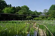 - 🌍 Hondoji Temple (本土寺), 63, Hiraga (from Kitakogane Station on the JR Joban Line, walk about 10 minutes), ☏ +81 47-341-0405. 08:00-16:30. Approximately 10,000 Japanese hydrangeas and 5,000 Japanese iris called 'Ajisai' and 'Shoubu' are in this temple. In June, a lot of people visit it and enjoy watching them. In autumn, the leaves turn red like fire. Red leaves are called 'Momiji' in Japan. A tour called the 'Ajisai tour' and 'Momiji tour' is available. It is open on New Year's Eve and you can ring a bell. It is called "Joya no Kane" In Joya no kane, people pray for happiness and health. ¥500 for adults, free fore children.