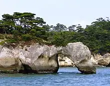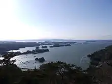 Matsushima (松島;) is a small town in Miyagi prefecture, northeastern Japan. The town faces Matsushima Bay, famous for some 260 tiny islands (島 shima) covered in pines (松 matsu) — hence the name — and ranked as one of Japan's Three Great Views.