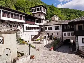 - 🌍 Saint Jovan Bigorski Monastery (Бигорски манастир), village of Rostuša. The most important cultural attraction of Mavrovo and one of the most important spiritual places for the Macedonians, Saint Jovan Bigorski Monastery was established in 1020. It was destroyed following Ottoman takeover and rebuilt beginning in 1743. Situated on a mountainside near the road connecting Debar and Gostivar, the monastery is noted for its wood-carved iconostasis, done by Petre Filipov-Garkata from 1829 to 1835, as well as its icon collection which contains icons dating from the 11th century. In addition to the main church dedicated to Saint John the Baptist, the monastery contains many other structures in its perched location. Visitors are required to dress modestly; skirts and shawls are provided for women at the entrance, as well as loose pants for men.