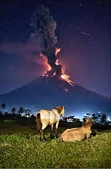 Mayon is an active volcano with a nearly perfect cone in the province of Albay in the Philippines. It forms the Mayon Volcano Natural Park, then named Mayon Volcano National Park, one of the first national parks of the country.