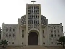 - The church The Catholic church is located on the road to Mbaye Mbaye and sports lovely panels of stained glass depictions. The choir at the weekly mass mixes African drum beats with classic hymns. Mass is given in a mixture of French and Wolof.
