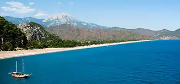 The Mediterranean coast of Turkey is mostly a narrow strip of land hemmed in by the pine-covered Taurus Mountains (Toros) and the Mediterranean Sea.