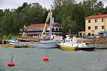 - 🌍 Vepsä (Vepsarn) (Erstan east of Rymättylä, own boat or m/s Lily/Rosita from Turku), ☏ +358 50-411-4963, vepsa@wcss.fi. Lodging in cottages and camping in tents. Beach, swimming, beach volley, boats and kayaks. Sauna. Café with breakfast, lunch, à la carte, and some groceries. Kiosk. Natural landscapes and seascapes. Lodging €55–90 for 2–6 persons (linen included), €275–450/week; tent €5/person (shower €2/6 min); harbour fee €10 (depth 1.5–2.0 m; showers €@/6 min), €30/week. Meals €12–22. Sauna €10–15/company/50 min. Rowing boat €3/hr, kayak €5/hr, minigolf/beach volley €4/2.
