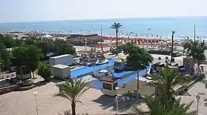 The beach can be crowded with Italians, but once you get into the water there is plenty of room. The water gets deep only after you get 30-50 m out and most Italians stay on the beach. You can rent parasols and beds, but there are many free strips.