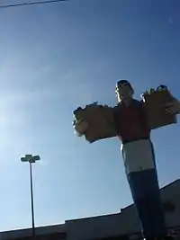 Metropolis is a small city in Southern Illinois probably named out of wishful thinking which hasn't really been borne out. The town's current claim to fame is as the host for a floating riverboat casino run by the Harrah's casino chain of Reno, Nevada. The town has also capitalized on its name by erecting what is referred to on road signs as a Giant Statue of Superman of DC Comics fame. In fact though the statue is called giant it's less than half as tall as the statue of Big John the grocer which is found in front of the Big John's supermarket on the way into town.