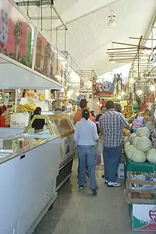 Across from Xochimilco Cathedral is a plaza where one can buy more handicrafts (as well as not-so-great second hand clothing imported from the US), but there is better merchandise across the street at the roofed public market. This is where the locals shop. Here you can buy produce, dried chilis, ice cream, juices, meat, fish, and clothing and items for baby bautizas (baptisms) such as elaborate christening gowns, floral displays, and items relating to the child's patron saint. If you are lucky, you may be able to pick up some blue corn tortillas or patas (spiced, jellied cow's feet.)