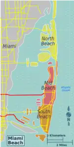 | Mid Beach Often known just as "Miami Beach", this district refers to the "Mid-beach" area between 23rd Street and 63rd Street. |