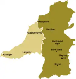 Mid Wales (Welsh: Canolbarth Cymru) is in the United Kingdom.