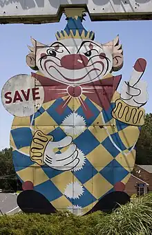 - 🌍 The Evil Clown of Middletown, Highway 35 (at Kings Hiway East.). A large outdoor sign on northbound New Jersey Route 35 in Middletown Township, New Jersey, advertising a liquor store.