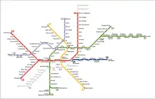 The Metro (short for Metropolitana, the logo is a big white M on a red background) has four lines, each commonly identified by a color as shown below, and is the best way to get around Milan. The lines are: M1 (rossa); M2 (verde); M3 (gialla); M4 (blu); M5 (lilla). The M4 is partially complete, with more sections to open mid-2023, and many other extensions of existing lines are under construction. The subway network is the most extensive in Italy (lines split into different sections and its 113 stations cover most areas of town). During peak hours trains run every 2 minutes on M1 and M2, every 4 minutes on M3 and on M5. Service starts around 6:00AM and the last trains run around midnight. From midnight to 6:00AM there is a substitute bus line (NM1, NM2, NM3 - M5 line doesn't have a bus line) running every 30 minutes. Take into account that the NM2 travels only inside Milan proper, between the station of Cascina Gobba and Abbiategrasso, while the NM1 travels between Molino Dorino and Sesto San Giovanni (excluding Rho and Rho Fieramilano) and between Bisceglie and Cadorna (where you can transfer for further stops along the M1 line).