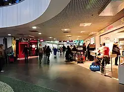 The station building itself is worth a visit being a masterpiece of rationalist architecture, and was extensively renovated in 2008. (Try as they might, they couldn't altogether erase the word "fascisti" from the imposing facade.) There are lots of small shops and cafes, both "landside" and "trainside" of the ticket barriers. There's a supermarket (Sapori & Dintori Conad) in the west side of the station in the basement, and internet points in the main square outside the station. The luggage store (daily 06:00-23:00) charges €6 for the first five hours, thereafter from 6 to 12 hours €0.90/hour, from 13 hours onwards €0.40/hour. You will need to show an ID card or passport.