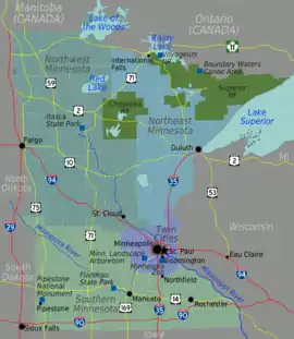 | Northwestern Minnesota The borderland to Canada, with plains and forest and the Headwaters of the Mississippi River. |