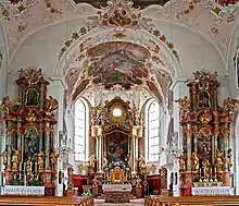 Interior of the parish church St. Peter and Paul, frescoes by Matthäus Grüner