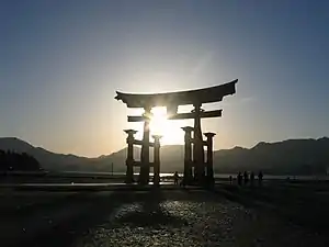 - 🌍 Itsukushima Shrine (厳島神社), 1-1 Miyajima-Cho, ☏ +81 829-44-2020, fax: +81 829-44-0517. Mar-Oct: 06:30-18:00, Nov: 06:30-17:30, Dec: 06:30-17:00, Jan-Feb: 06:30-17:30. A UNESCO World Heritage Site, Itsukushima is a large, red-lacquered complex of halls and pathways on stilts. It was built this way so that commoners could visit without defiling the island with their footprints. Weddings are occasionally held at the shrine, but that doesn't bar visitors, and the priest's ceremonial dance is a memorable sight. ¥300 for temple entry, ¥500 for entry plus Treasure Hall.