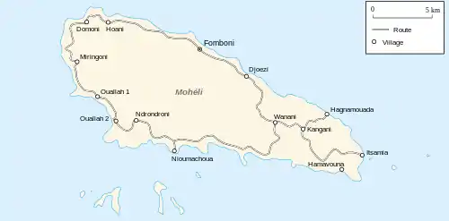 Map of Mohéli. - 🌍 Nioumachoua – Second-largest town, about 30 km from the airport on the southern coast of Moheli.