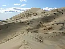 - 🌍 Kelso Dunes (Kelso Dunes Rd off Kelbaker Rd). The massive Kelso Dunes are easily accessible by car (no four-wheel-drive needed). Second highest sand dunes in California, up to 700 ft (210 m). They are created from wind that carries dust and is reflected off a mountain. The top of the highest dune has beautiful views of the surrounding desert. Beyond their large size, these dunes also have a phenomenon called "singing" or "booming" dunes. When the moisture content is right in the sands, they emit a low thrumming sound as sand slides down the slope. Try running down the slope of a dune to trigger the sound. From the parking area, the dunes do not appear to be very far away or very large. This is an optical illusion. The hike is about 3 miles (5 km) round trip with a roughly 600-foot (180-meter) elevation gain, and hiking in sand is a lot more work than on solid ground. Allow 2–3 hours to climb to the top of the dunes and back, bring plenty of water, wear sunscreen, and take off your shoes or prepare to get sand in them.