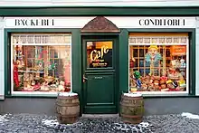 The old town has a wide selection of tourist oriented shops, selling a range of souvenirs, books and clothing. Local food specialities include Printen, a spiced cooky, Dütchen, a biscuit like roll often filled with cream and fruits and mustards. A square type of chocolates called Monschauer Venn-Brocken is shaped to resemble the peat blocks that were locally produced in large quantities to fuel the textile industry. All of these can be purchased from many tourist shops, cafés and the several bakeries you'll encounter in the old centre. There's one small supermarket in the lower part of the Laufenstraße, but for other shopping opportunities (including supermarkets Aldi, Lidl and Netto and a small department store) head to the Imgenbroich area. Many of the tourist shops in the old centre are open on Sundays, but that's not the case for all regular stores.