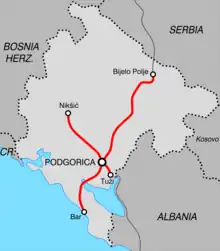 There are no roads in Montenegro built to motorway standard, however a Bar-Belgrade motorway should be completed by 2032.