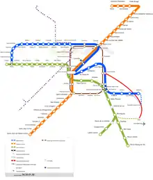 The Montpellier tram service features four lines: line 1 from west to east (Mosson<->Odysseum) line 2 from south-west to north-east (Saint-Jean-de-Vedas<->Jacou) line 3 from west to south-east (Juvignac<->Perols/Lattes) line 4 circle line (Albert 1er<->Saint-Denis). A fifth is being built.