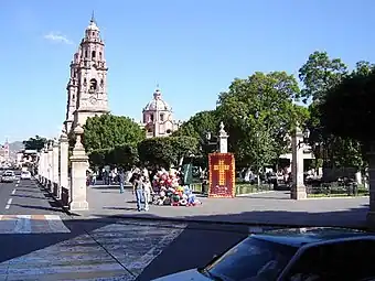 - 🌍 Plaza Villalongin. A plaza with a large fountain at the foot of the Morelia aqueduct. Surrounded by trendy shops, cafes, bars and restaurants.
