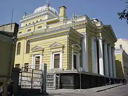 - 🌍 Choral Synagogue (Московская Хоральная Синагога, (בית הכנסת כורל (מוסקבה), Basmanny District, Bolshoy Spasogolinischevsky Lane (Большой Спасоглинищевский пер.), 10 (Kitai-Gorod Metro station), ☏ +7 495 940-5557, fax: +7 495 624-6301, info@jewishcom.ru. The main synagogue in Russia and in the former Soviet Union. Completed in 1891. Map of Jewish Moscow