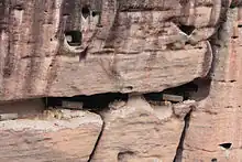 - 🌍 Xianshui Rock (仙水岩). Cliff looming over the river, with ancient coffins stuffed in holes. It is possible to visit a small temple built into the cliff, and the trail also winds around through a gap in the rock to the lower end of the rafting, then up to an eye-level viewpoint of another 15-20 ancient wooden coffins.