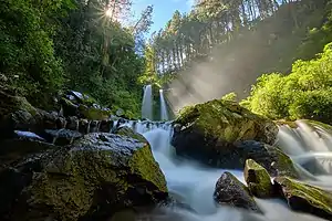 From Pos II there is a dead end that leads to a river which is used as a source of water for the people around Wekas to the surrounding villages. This path follows the flow of water pipes along the edge of a ravine that leads to a stream below the crater. There are two very steep rivers that form a tiered waterfall so that it becomes a very extraordinary sight against the background of a collection of peaks - the peaks of Mount Merbabu.
