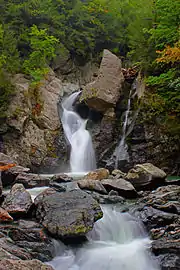 - Bash Bish Falls State Park, ☏ +1 413 528-0330. Falls Road. Perhaps the state's most dramatic waterfall. The falls cascade through a series of gorges, and then drop 60 feet into a sparkling pool below. Wilderness camping available year round. There are two paths from the parking lot on the Massachusetts side of the park: One to a scenic lookout and the other to the falls. The view from the scenic lookout is a bit disappointing. From there, it is possible to do a difficult hike all the way down to the falls. The path from the falls back up to the parking lot is moderately difficult (make sure you take the path to the right parking lot, as there is one on the Massachusetts side and another on the New York side). Numerous signs warn that swimming in the park is prohibited, yet you will see some people swimming at their own risk, anyway. It is possible to see multiple hawks gracefully gliding in the sky over the falls, if you look at the right time. Free.