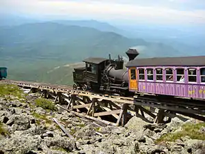 - The Mount Washington Cog Railway (off Route 302 in Bretton Woods), toll-free: +1-800-922-8825. The world's first (1869) mountain climbing cog railway and is still in operation today. The round trip takes three hours with a 20-minute stop at the summit. The train runs from late April to late November (check the website for details), and has special "ski train" runs during the winter.