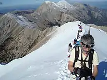 A mountain expedition usually consists of a combination of hiking (in some cases skiing), scrambling and actual climbing on rock or ice – besides taking care of safety and basic needs.