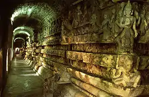 - 🌍 Shitthaung Pagoda (Ran Aung Zeya) (1 km northeast of the royal palace, between the other sides). This pagoda is still being used by local people. Many angled corridors can be found inside, along which interesting stone carving work can be admired and photographed, like the 550 Jakata (birth name of Buddha) reliefs. The name means 80,000 Buddhas, and so more than 80,000 (actually 84,000) displays of Buddha can be found here. The other name of the pagoda, Ran Aung Zeya, means "victory over the enemies", which refers to an attack of the Portuguese by sea before construction of the pagoda began, which was repelled. The pagoda was built in 1535 by king Mong Ba Gree (Minbun), who ruled from 1513 to 1553. Built in a year by 1,000 workers. Use the northern entrance and turn right immediately if you want to avoid the fee. However, walking towards the Buddha in the center, you will have to walk by the foreigner booth - or just walk back the same way..