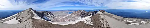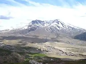 Mount St. Helens is a typical stratovolcano, the volcanic form most familiar from photographs of their typically conical profiles. The great 1980 eruption destroyed most of the volcanic cone, leaving a huge amphitheater on the north side that is well seen from the Johnston Ridge observatory and visitor center. Volcanic activity in 2004-05 built a new lava dome within this amphitheater, visible from the "VolcanoCam" at the observatory but not yet large enough to replace the destroyed cone.