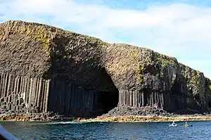 - 🌍 Staffa is an islet half a mile long, five miles off Mull. It's lined by dramatic basalt columns: the stand-out is Fingal's Cave but this is just the grandest of several similar formations. They were all formed in the same volcanic upwelling as Giant's Causeway and Torr Head on the Antrim coast of Northern Ireland. Staffa lacks safe anchorage and has long been uninhabited; it was little-known until 1772 when the naturalist Sir Joseph Banks visited. He returned louse-ridden but singing its praises, and celebrities followed. It's now a nature reserve in the care of National Trust for Scotland, with seas and cliffs whirling with wildlife. Boats visit in summer from Ulva Ferry and Tobermory. Take great care on the narrow, worn landing platform by Fingal's Cave. No access mid-Aug - Oct 2023 as this area is being rebuilt. The path into the cave was improved in winter 2022 / 23.