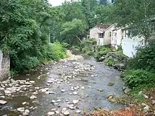 Slab Fork Creek, through a residential neighborhood in Mullens, WV