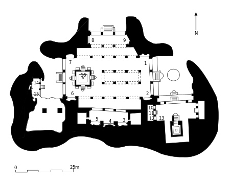 • Linga Shrine (no. 16 on map): The Linga shrine consists of a free standing cubical cell located on the eastern side of the main hall. All four sides have doors approachable by a flight of stairs. All sides of the four doors are flanked with colossal statues of dvarapalas (gate guardians).
