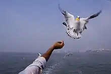 The journey is a remarkable experience and the ferry sails past the Mumbai harbour providing great views of the city skyline. The ferry also sails past huge ships from all over the world. Folks of seagulls are part of the journey. Tourists feeding these birds fried snacks causes serious damage on the birds' health and is illegal, but the practice continues.