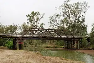 - Moree - south-east of Mungindi: 120 km via St George Street/Carnarvon Highway south-eastbound, cross the Boomi River bridge, cross the Gil Gil Creek bridge, cross the Carole Creek bridge, through Garah, through Ashley, turn right onto Boggabilla Road (1 hr 20 min)