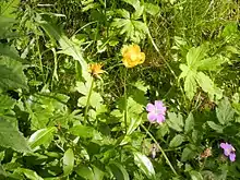 The fell plateau is dominated by fell heaths, with fell birch in the valleys. Alpine bearberry (rievssatmuorji, Arctostaphylos alpinus) give the heaths a distinct red colour in the fall, at ruska.