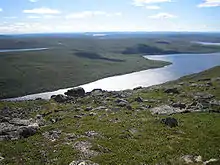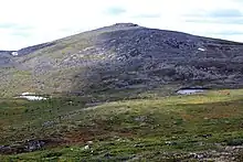 You could also follow the path from the village until it turns from south-west to south on Muoidunaláš/Muáđumaalaaš, then turn to north-west to get round the fell and climb it from the west and return by the other path. That way you don't miss the view to the fell's impressive southern slope and get a little feel for the larger wilderness area.