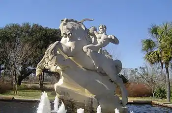 - 🌍 Brookgreen Gardens, 1931 Brookgreen Drive (off of US 17 south of town), ☏ +1 843 235-6000. A huge garden on the grounds of a former plantation that has one of the most significant collections of figurative sculpture by American artists in the world. The sculpture collection is large and quite varied, and sits in a beautiful setting of lakes, ponds, and groves of oak trees covered in Spanish moss. Connected to the gardens is the Lowcountry Zoo, where you can see alligators, otters, foxes, and deer in naturalistic exhibits built into the swampland, as well as get (very) up-close with birds in a couple of aviaries. Additionally, there are historical exhibits, a playground with structures based on fairy tales, a butterfly house (extra admission required), sculpture pavilions, and a lake where you can take boat rides (extra admission required). A warning, however: the historical exhibits, particularly the movie that plays in the welcome center, have a habit of glorifying the plantation culture that was once here, so you might want to skip the movie and just get out into the gardens. $14 adults, $12 seniors, $7 children.