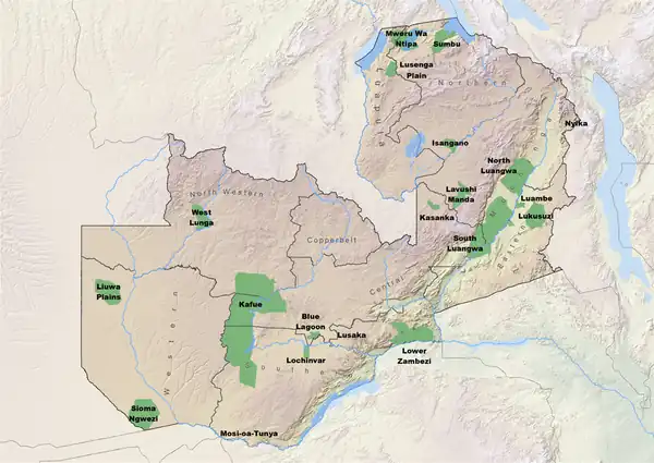 North Luangwa National Park is a national park in Eastern Zambia, a short flight away from South Luangwa National Park. It was until 2005 the domain of a limited number of safari operators who held a government concession. Since 2005, day visitors have been allowed.