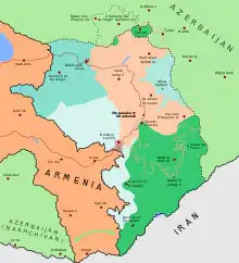 The area of the Karabakh region under Azerbaijan's control is covered in the Karabakh (Azerbaijan) section. Because it is under the control of Azerbaijan, Wikivoyage breadcrumbs it under Azerbaijan. This page does not represent a political endorsement of the claims of either side of the dispute.