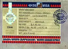 Nagorno-Karabakh entry permit, issued in Yerevan.