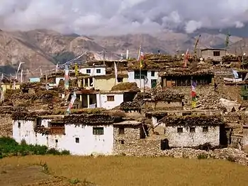 - Gates in the village streets. Built from stone and wood and painted in the inside with colourful Buddhist religious paintings.