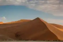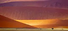 Namib-Naukluft National Park spans a large area along the coast of Namibia. Its southern part is in the ǁKaras region, its northern part in Erongo, and the main part is in Hardap. The western part of it, the Namib Sand Sea, is listed as a UNESCO World Heritage Site.