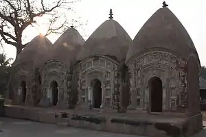 There are several temples built in the 17-18th century beside a mound popularly known as Chandidas bhita. Some of these temples have exquisite terracotta sculpture.